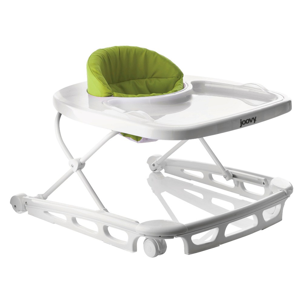 Walker meets highchair. The Spoon walker combines these two essential products into one to provide the perfect balance of eating, playing and learning to walk! Practical and good-looking, the Spoon will blend perfectly into your kitchen and home decor. For meal and snack time, the Spoon comes with a super-sized tray that has a removable insert that can be wiped clean or put in the dishwasher for convenience. Once mealtime is over, there is lots of room for play! The extra-large tray has plenty of room for all your child’s favorite toys. The bright white color and high-gloss finish give the Spoon premium styling that cleans up easily. As your child learns to master walking, you will feel confident using the Spoon with its ultra-wide base that provides unparalleled strength, stability, mobility and safety. The wide base ensures that little fingers won’t get pinched on the side of the tray if your toddler bumps into a wall. The seat pad is supportive and comfortable, machine washable, and is made with 600D material - combining luggage grade toughness with a soft and padded high seat back. The Spoon has three height positions that are ideal for a child who can sit upright unassisted, up to 30 lbs and/or 33.5 inches tall. Built with steel reinforcement, oversized wheels and non-slip stair pads, the Spoon meets or exceeds all government standards in compliance and stair safety. Still, Joovy always rmends using a gate to keep stairs out of reach. The Spoon folds flat for easy storage and travel. All Spoon walkers come out of the box almost ready to go – you only need to install the seat pad. The Spoon is entirely BPA, PVC and Phthalate Free. JPMA certified. Color: Greenie. Pattern: Solid.