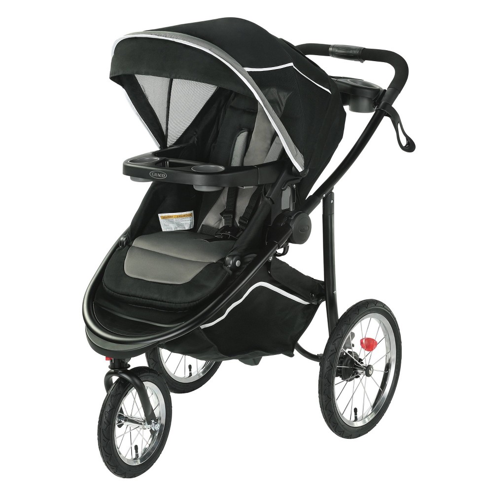 Graco Modes Jogger 2.0 Stroller : The Graco Modes™ Jogger 2.0 Stroller gives you 7 ways to ride plus everything you need to jog. This jogger has all the comfort and convenience features you need: air-filled rubber tires, a safety tether, a large UV50 canopy, and ample storage. The one-hand, self-standing fold makes on-the-go adventures a breeze. Keep your child comfortable with the adjustable calf support, and keep them satisfied with the child tray and cup holders! The stroller accepts all Graco infant car seats for a one-step, secure connection of infant car seat to stroller.