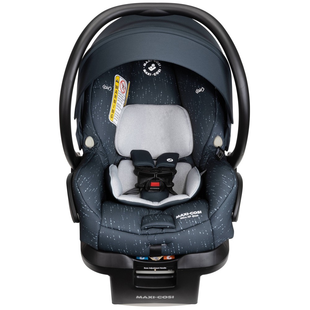 Our patented Air Protect technology provides superior side impact protection around the head and extends down the side as well. An improved safety feature in the car seat's base is the anti-rotation stability leg that provides maximum head and neck protection. The stay-in-car base features our MaxiLock™ secure locking system with self-retracting one-click LATCH connectors for quick, easy and secure installation. To protect your child in a way that’s both pure and cozy the Mico XP Max features PureCosi™ fabrics made without wool or added fire retardant treatment that are machine washable and dryer safe. Choose from an array of beautiful fashions designed to fit your lifestyle. Made of luxe fabrics for long-lasting durability and ultimate comfort from head to toe; the fabric is easily removable with no need to unthread the harness. The plush, premium soft goods provide extra cushioning, with cozy head and neck support, soft body pillows and cushiony seat pad. As baby grows the infant insert easily removes, providing the same amount of comfort and support. The Mico XP Max is lightweight with a contoured handle, making it comfortable to carry. Once you’ve reached your destination the stylish Mico XP Max is compatible with an array of premium strollers. Color: Sonar Gray.