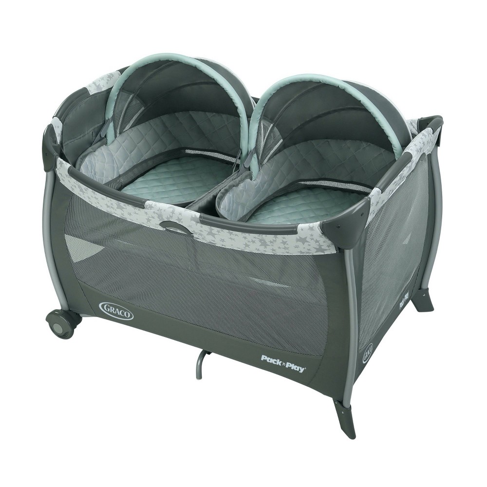 Graco Pack 'n Play Twins : Two babies mean double the cuddles - and double the need for comfort. The Graco Pack 'n Play with Twin Bassinets is a roomy play yard that makes a perfect spot for your new babies to rest with its cozy, quilted twin bassinets and light-shielding canopies. Sweet dreams!